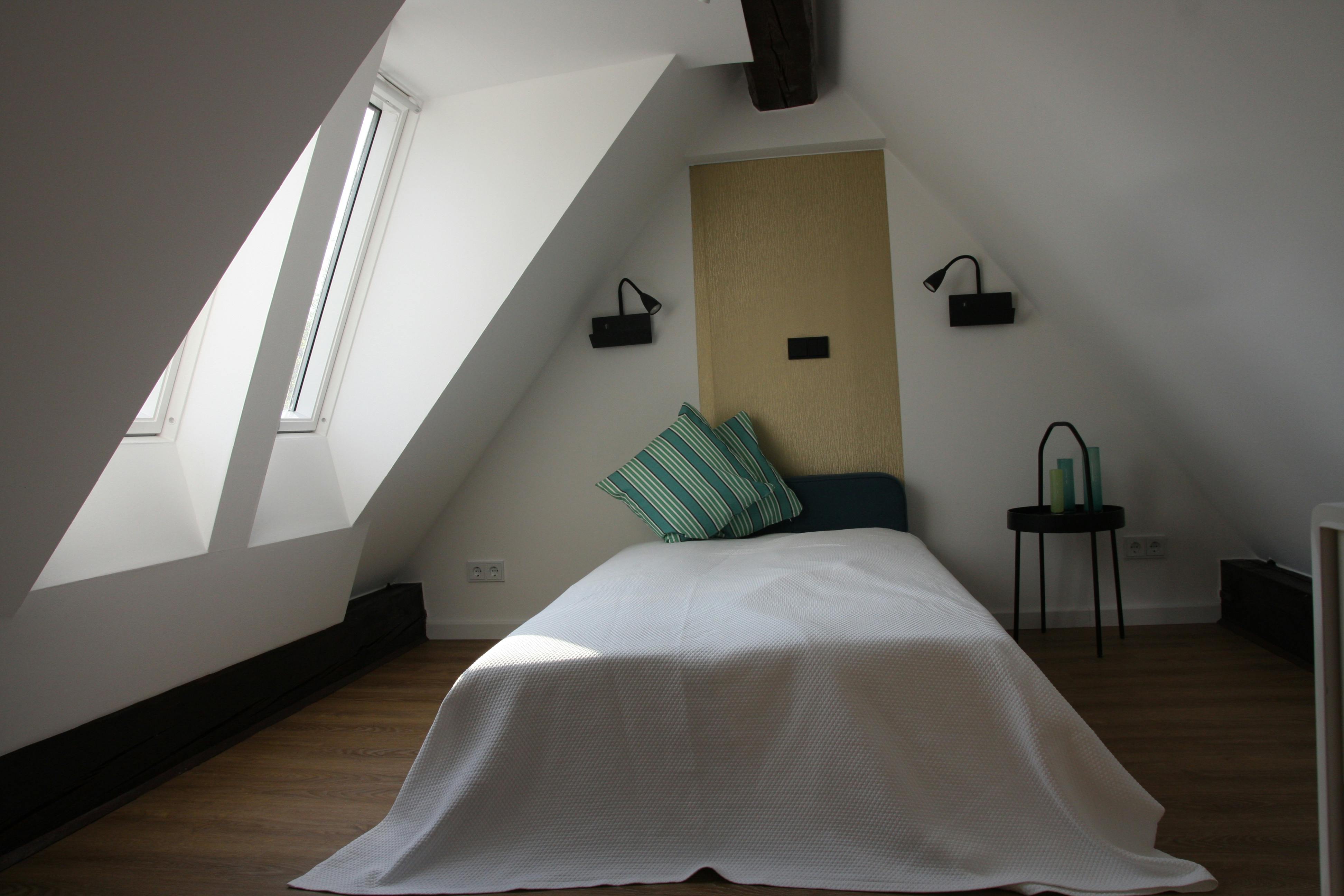 Einzigartiges Haus mit Turmzimmer und Sonnenterrasse Die 3 Zimmer mit Turm befinden sich in einem eigenen getrennt zugänglichen Hausteil in einer großen Villa mitten im Park und sind über die große Sonnenterasse mit Treppe zu erreichen. Sie verteilen sich auf ca. 86qm mit Splitlevel. Das Schlafzimmer mit Kingsize-Bett und großem Kleiderschrank liegt unten neben der Luxus-Küche. Das Tageslicht-Designerbad mit Dusche und Badewanne läßt keine Wünsche offen. Das große Wohnzimmer mit einer Raumhöhe von fast 5 Metern Höhe ist mit hochwertigen Designermöbeln von u.a. Le Corbusier und De Sede und einem großen TV ausgestattet. Für den Arbeitseinsatz steht ein Schreibtisch mit sicherem W-LAN...